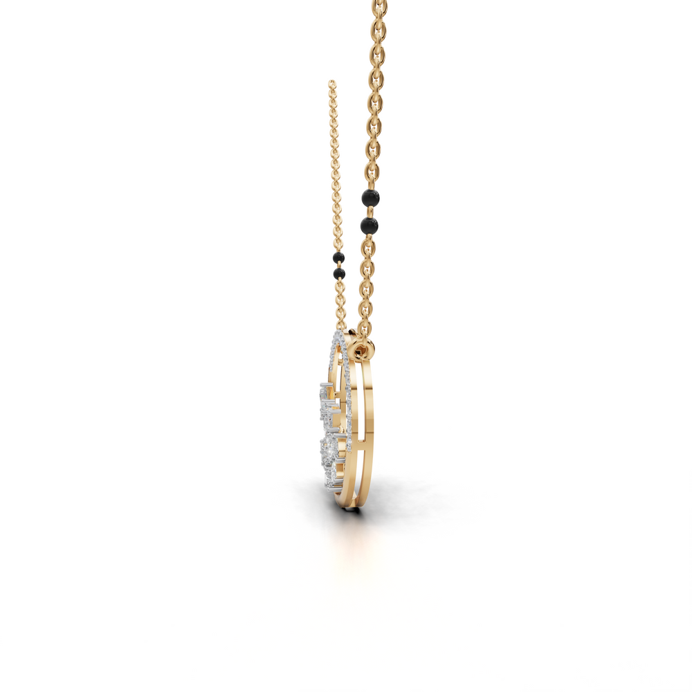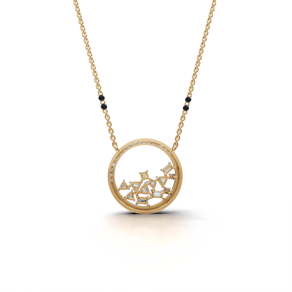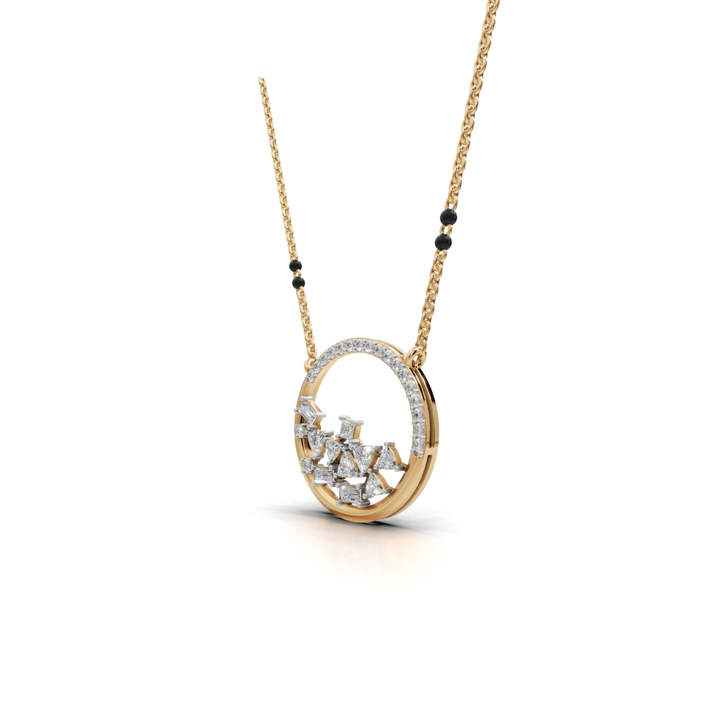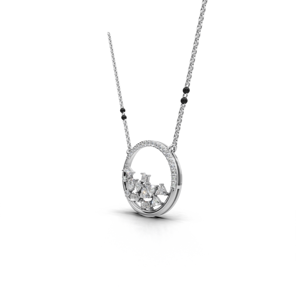 Designer Necklace featuring a circular pendant filled with intricately arranged diamonds.