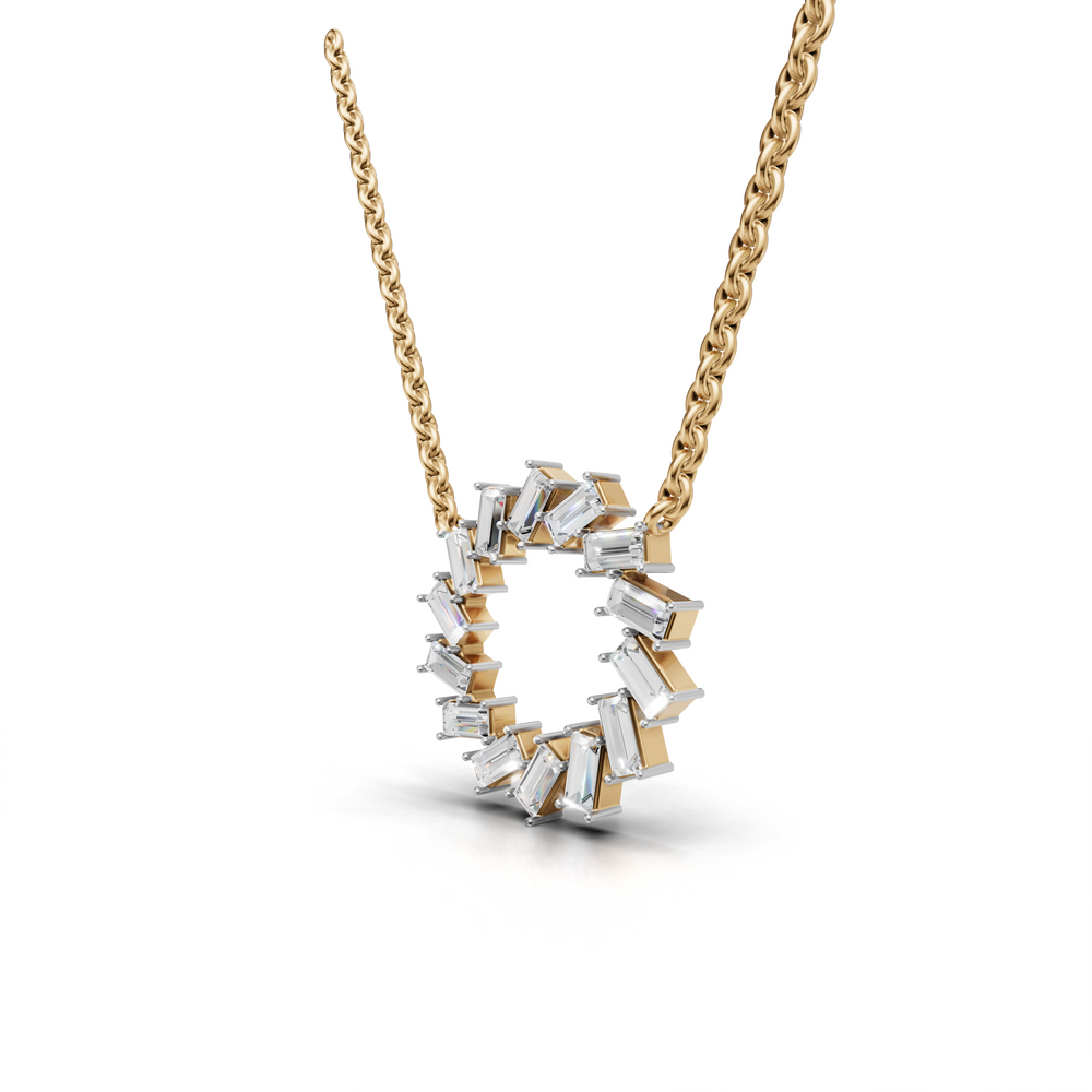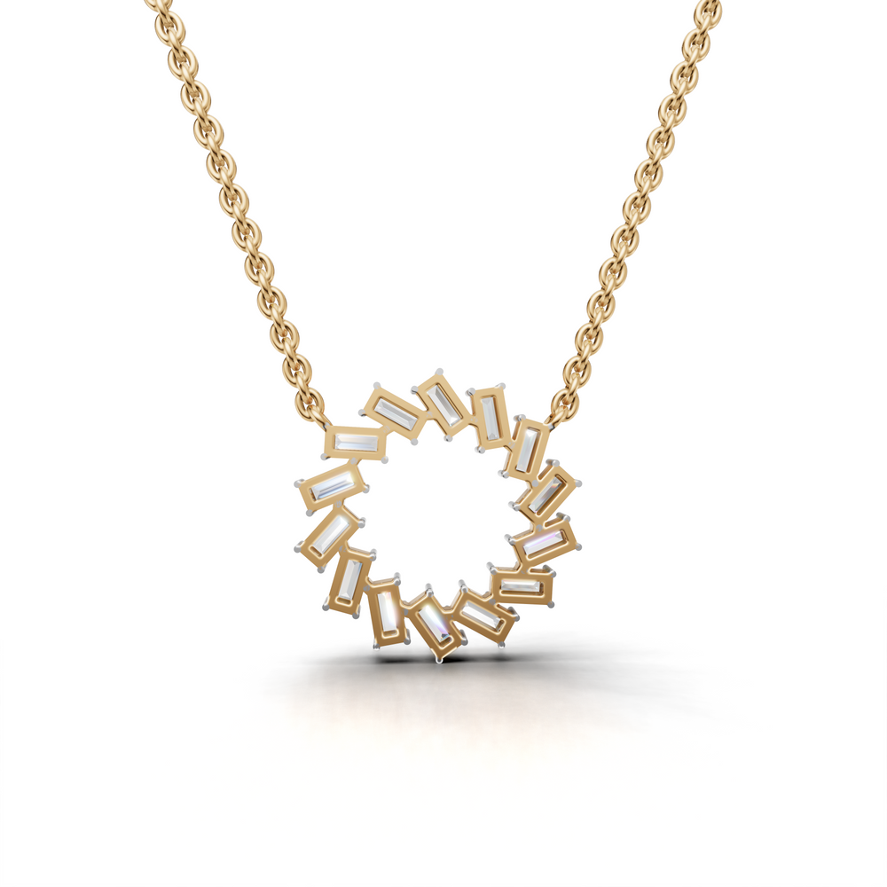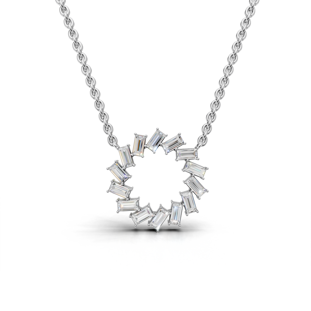 Dazzling Baguette Diamond Circle Pendant Necklace