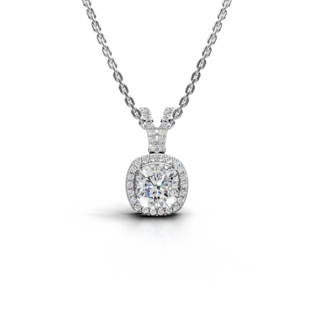 Exquisite Cushion-Cut Diamond Halo Pendant