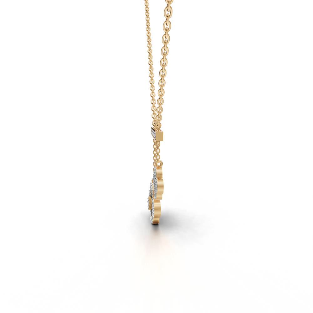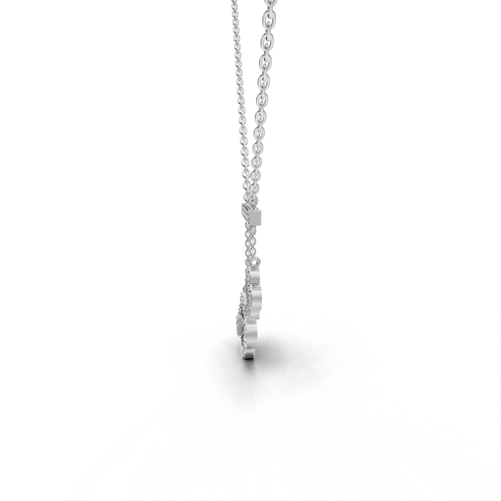 This image showcases a delicate and elegant necklace featuring a whimsical clover design.