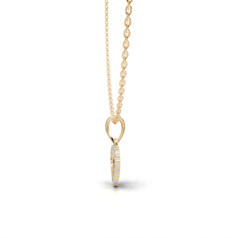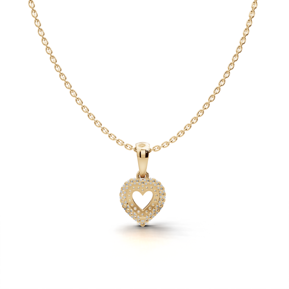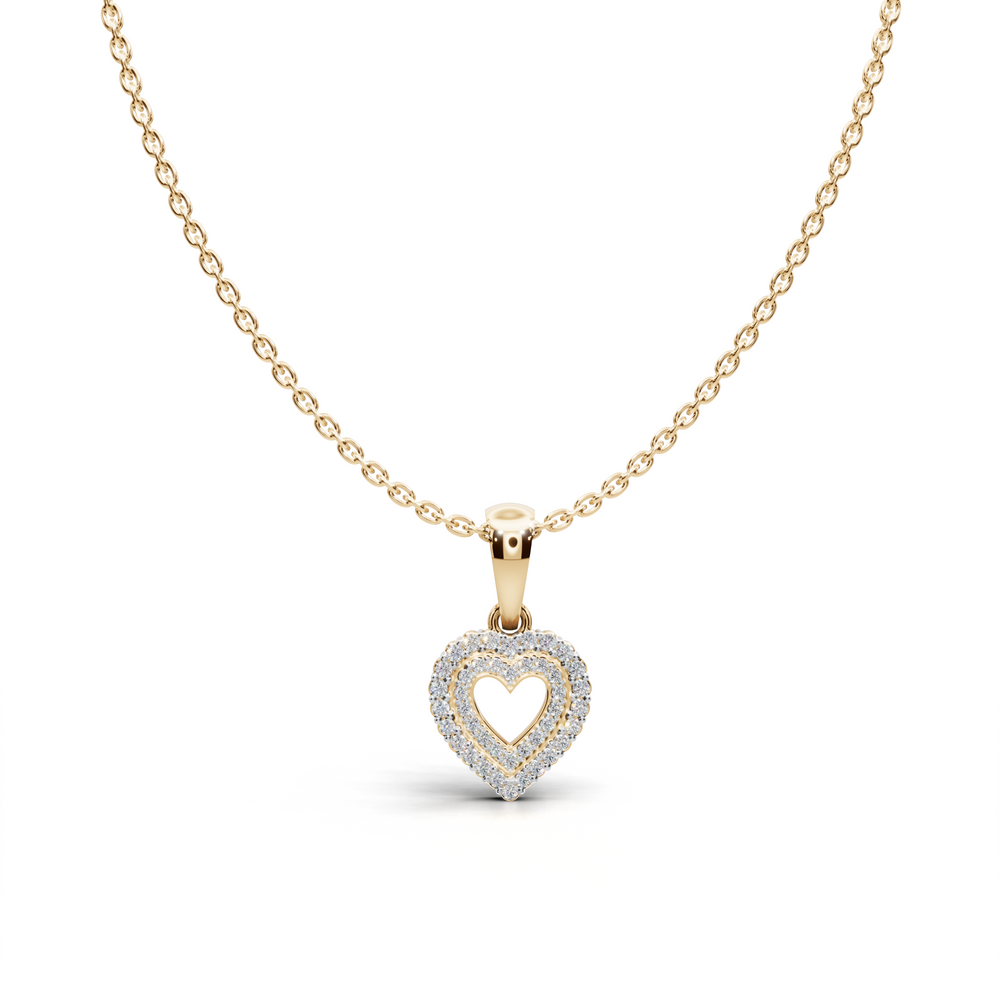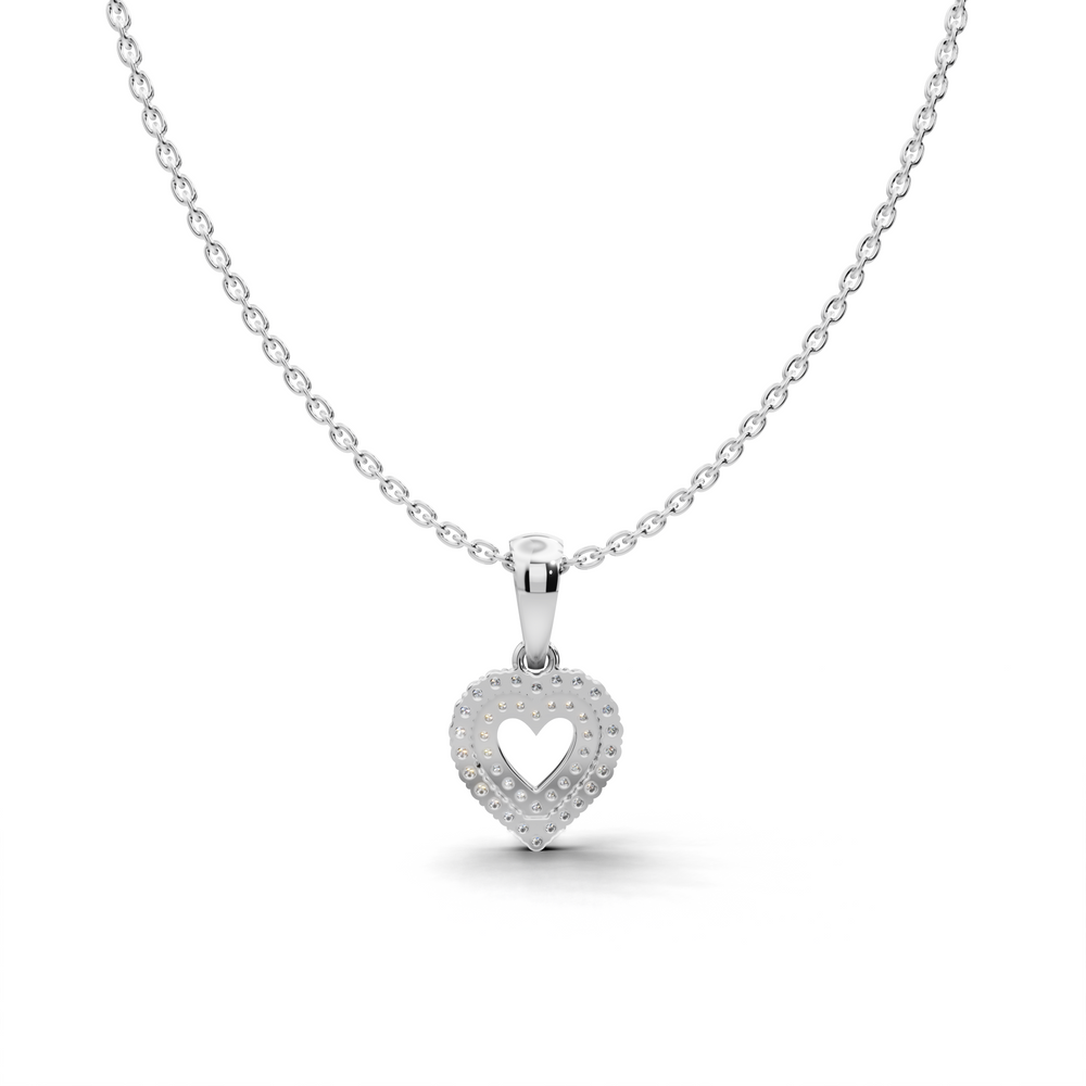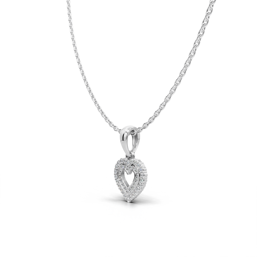 The necklace features a delicate chain and a sparkling heart-shaped pendant encrusted with brilliant-cut diamonds.