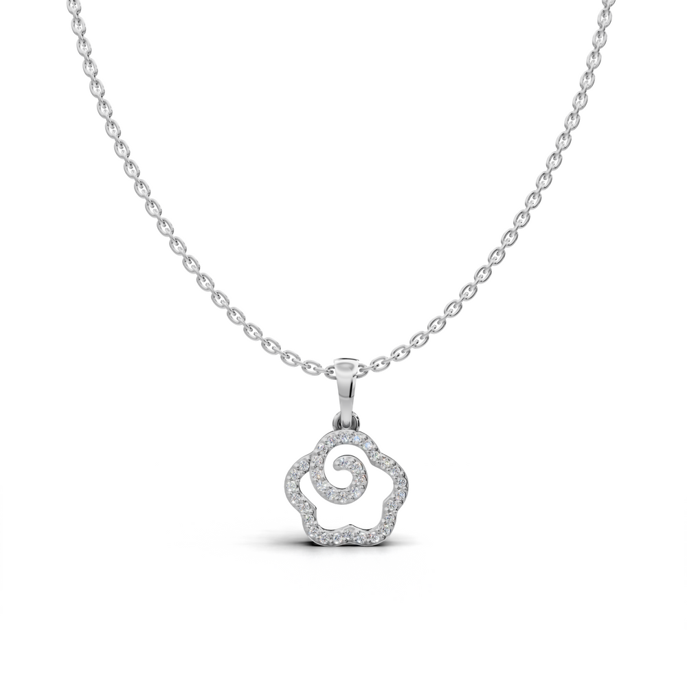 This is a delicate, silver-toned necklace featuring a stylized rose pendant.