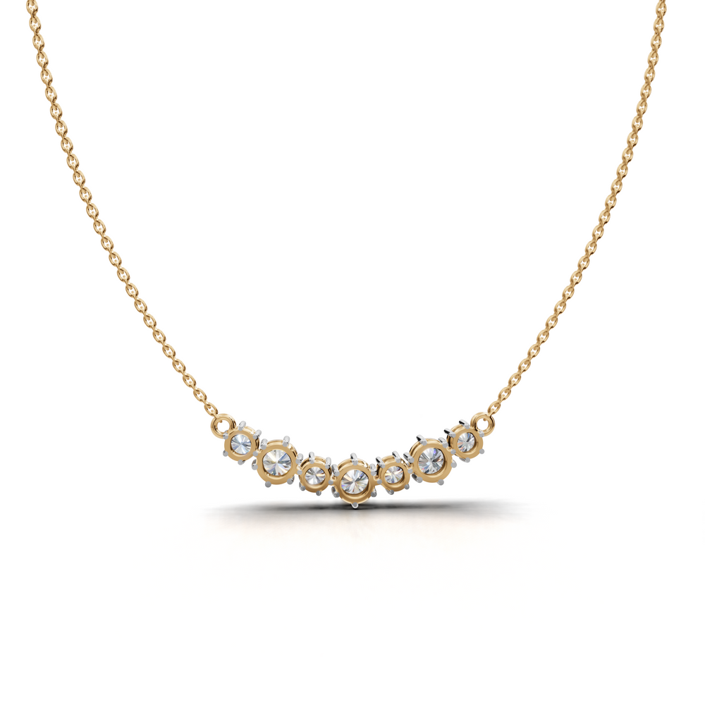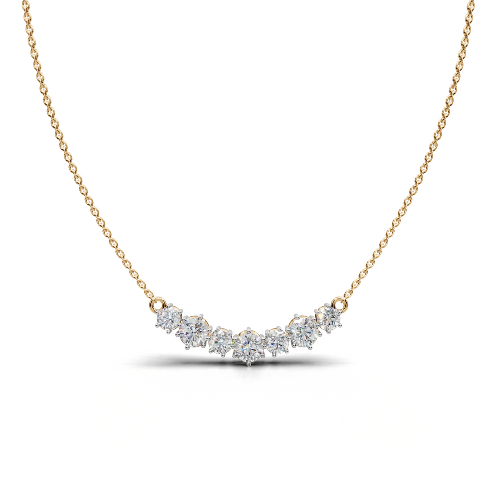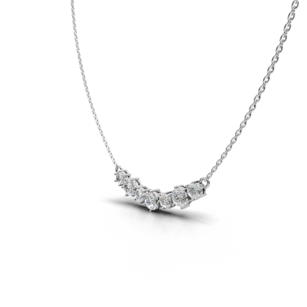 Diamond necklace featuring a series of round-cut diamonds set in a curved line, suspended from a fine...